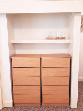 The Corner Suite is a double-occupancy room that features two large windows and a private bath, shared with two neighboring residents. You and your roommate have two closets, one of which is a walk-in. This bedroom is down the hall from a shared living space, equipped with a TV and DVD player.